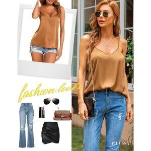 Design: Alluring V-Neck cami top with adjustable spaghetti straps leak the back of half to enhance feminie, and this satin top for women give the look