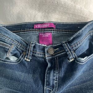 Stylish Vigoss jeans with detailed pocket embroidery. Perfect to style with a cute pair of heels or knee high boots for that Y2K look !
