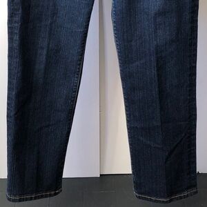 Vigoss jeans dark wash SZ 13/14 W and 32 L - these jeans are preowned great condition, dark wash size 13/14 wide with a 32 inch inseam. They have beautiful gold threading throughout the jean as well as the design on the back pockets. Zip front. These jeans are great quality and almost brand new. The cut of the gene is similar to a straight/skinny. Measurements are approximate, 10 inch front rise, 14 inch back rise and 10 inch thigh.