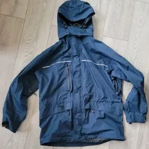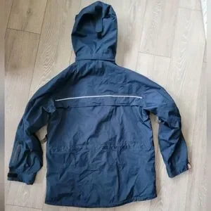 Viking Workwear Shell Jacket in great condition. Size Large but I feel it fits larger so I added a pic with the measurements. Loads of pockets, waterproof, ventilation zippers, reflective accents. It eas used for a short time for Security Personnel so there is an area on the front where the security patch was removed.