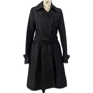 Viktor&Rolf x H&M Button Front Belted Trench Coat Jacket Heart Details Black US6