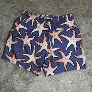 Vilebrequin Swim Trunks Mens XL Swim Shorts Blue Starfish Polka Dot Liner