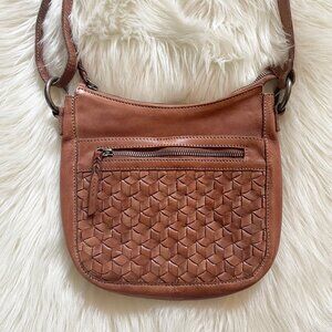 Vilenca Holland Dark Cognac Brown Woven Natural Leather Crossbody Purse Bag