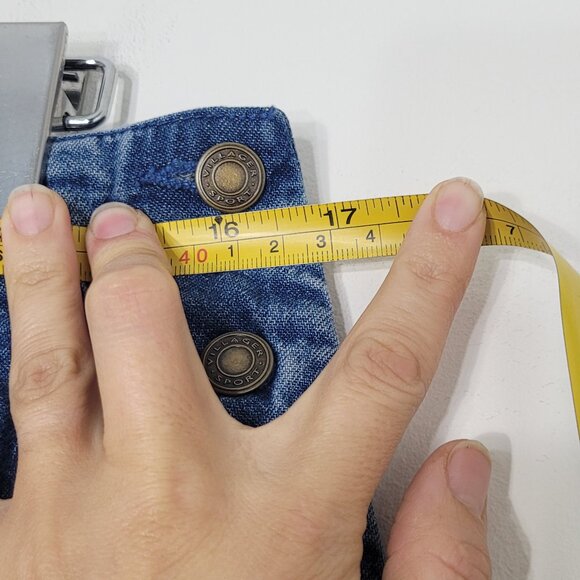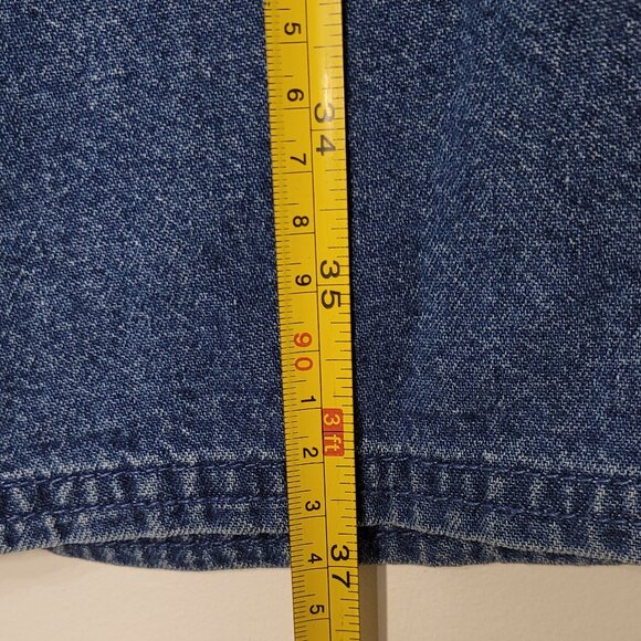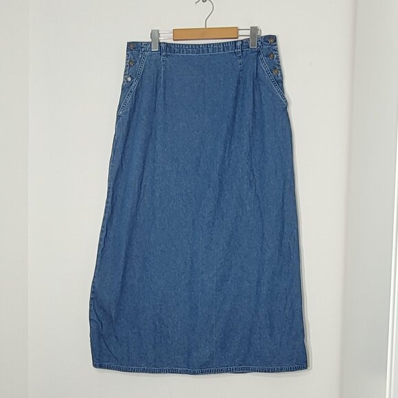 Villager Sport Vintage Blue 100% Cotton Bottom Slit Denim Skirt Button Size 14