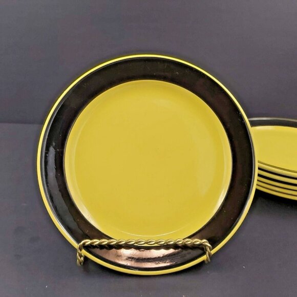 Villeroy & BOCH MCM Yellow Black Salad Plates 7.5" Saar Union 1950's Set of 6