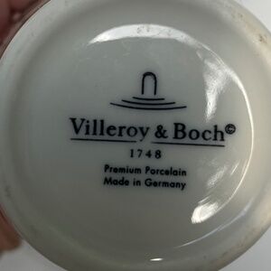 The back stamp has information about the mug, including “Villeroy & Boch, 1748, Premium Porcelain, Made in Germany”.