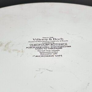 11" scalloped Quiche dish in the Botanica pattern "Anthemis tinctoria" (yellow chamomile) by Villeroy & Boch. This dish is in excellent condition with no chips or cracks and the transfer is in very good shape with minimal scratches.