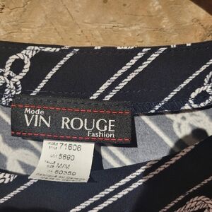 Vin Rouge Canadian Brand🇨🇦 Navy and White Geometric Top With White Bottom.