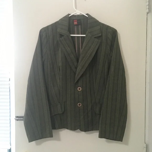Vin Rouge Olive Green Jacket-Stripes Design
