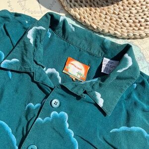 Vinage Bermuda Cruz Hawaiian surf shirt. Button up, great print! Tag with size has been cut, would say it fits as a large. 100% rayon. Measures 20" across shoulders, 21" pit to pit, 27" long.