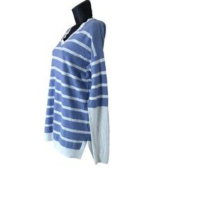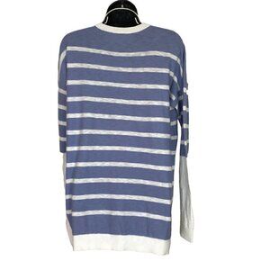 Vince 100% Cotton Blue & White Striped V-neck Sweater Light Weight Nautical Vibe Oversized Size M