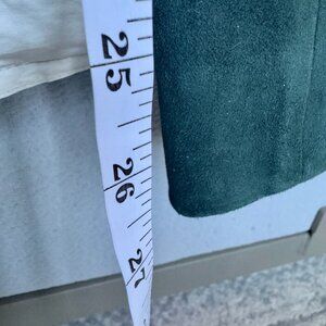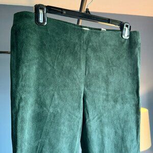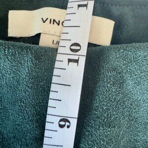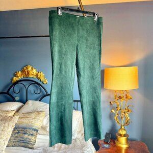 Vince 100% lamb leather suede split hem leggings in a deep forest green, size L. Excellent new without tags condition. Waist measures just under 15.5 inches laying flat, rise is 10 inches, inseam is 26.5 inches. Cat friendly, nonsmoking home.