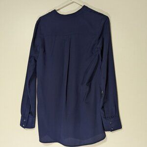 Vince 100% Silk Button Up Shirt with Front Pockets Navy Blue Size 4