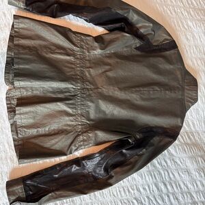Vince Army Green Polished Cotton and Leather Utility Jacket XS