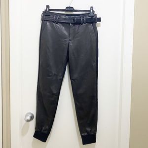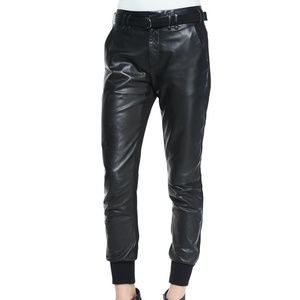 Vince Belted Super Soft Lamb Leather Jogger Pants 4 Black on Black