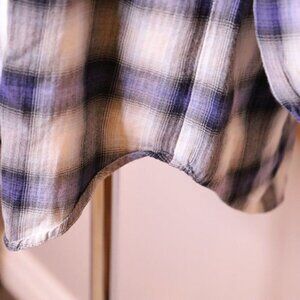 100% Cotton button down plaid shirt/tunic from Vince. Features a longline cut, ideal for layering!