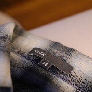 Vince Blue Plaid Button Down Tunic Shirt Sz XS