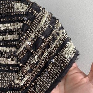 This dress is all over sequin and has some thread pulls / sequins imperfections throughout. See photos.