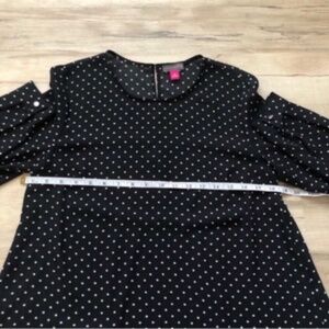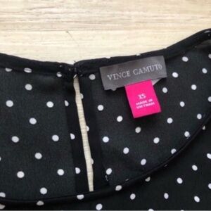 This elegant blouse from Vince Camuto features a classic black and white polka dot pattern, offering a timeless and versatile look. Crafted with a lightweight fabric, it ensures comfort and ease of movement, making it perfect for both casual and formal occasions. The relaxed fit and long sleeves add a touch of sophistication to any outfit.