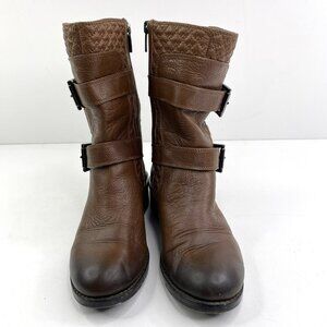 Vince Camuto Boots Size 5.5 Welton Brown Motorcycle Moto Combat Mid Calf Leather