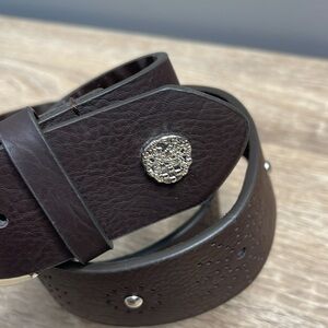 Vince Camuto Brown Vegan Leather Belt Silver Buckle Studded Perforated Design M
