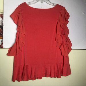 Vince Camuto Butterfly Flutter Sleeves Top Ruffle Fairy Red Tee Shirt Stretch L