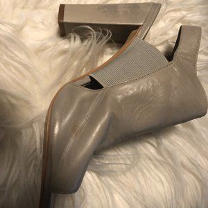 worn once, nappa leather upper, lining leather. very buttery soft leather, very comfortable. chunky heel, neutral grey.