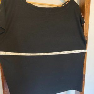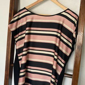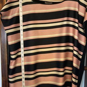 This Vince Camuto striped blouse is an elegant go-to that pairs well with jeans, leggings or your favourite trousers. It is super comfortable with a soft stretchy back, cap sleeves, and a boatneck.