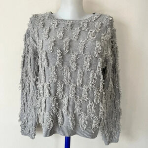 Vince Camuto Cotton Eyelash Gray Sweater Long Sleeve Top Crew Neck Shirt Sz M