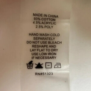93% cotton, 4.5% acrylic, 2.5% polyester