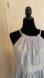 Sleeveless, cotton summer dress in a crisp blue & white pattern. Bouffant style dress. Bottom of dress has a very colourful floral pattern with button embellishments (sewn inside flowers (see pictures). Colours are Red/Yellow/Pink/Blue/khaki/creme. Lining inside of the bodice. Zipper closure in the back. Size 8.