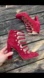 Elevate your fall wardrobe with these gorgeous statement high heels. Made with vibrant cranberry genuine suede, subtle gold finishings, and zippered heel. These features give the heels a chic, contemporary look that combines both style and a bit of edginess. 4 inch heel. Size 5 1/2. Purchased in Greece.