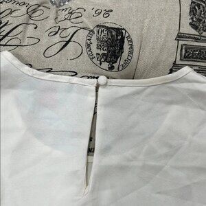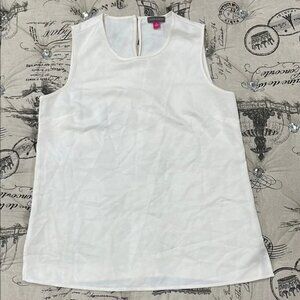 This cream tank top by Vince Camuto features a sleeveless design that offers a relaxed fit, making it a versatile piece for layering or wearing on its own. The simple and elegant style is perfect for casual outings or dressier occasions.