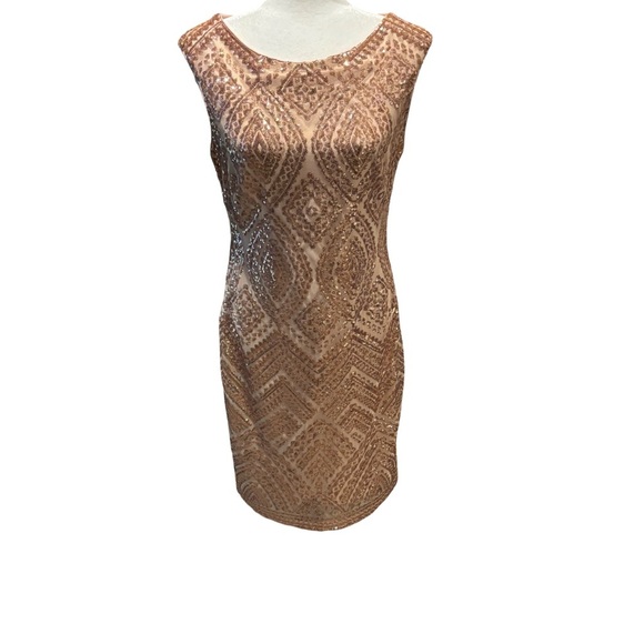 Shine in this elegant sleeveless dress featuring intricate sequin detailing. Perfect for special occasions. Never worn, NWOT size 10 very pretty dress