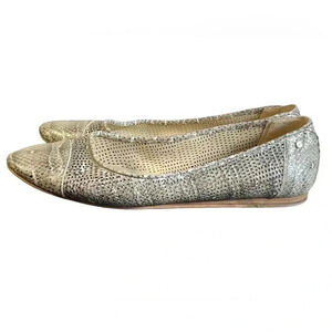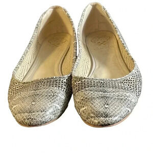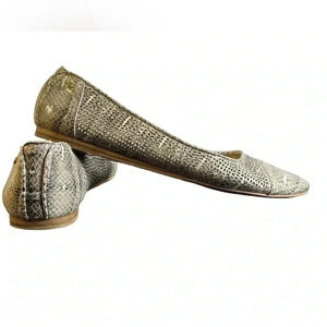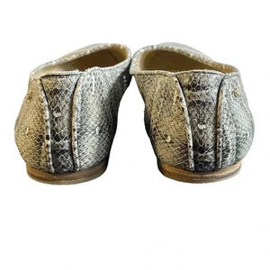 Vince Camuto Flat Leather Cream Bronze Snake Print Size 9.5M