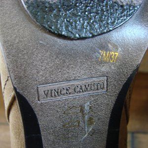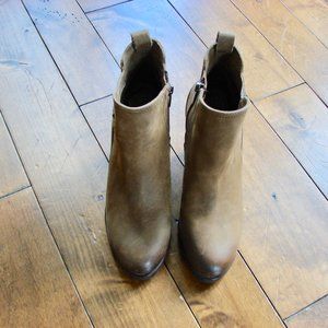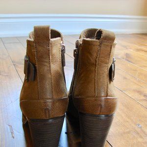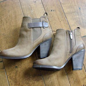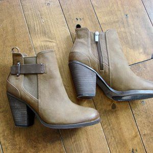 Vince Camuto Hayes Tan Brown Leather Chunky Heel Ankle Boots Booties Size 7