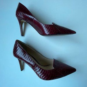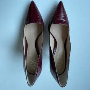 Vince Camuto Heels Pointy Toe Pumps Heels With Snake Print Plum Redish EUC