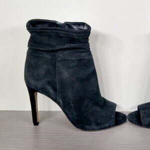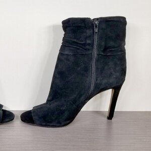 Vince Camuto Keyna Peep Toe Booties, Black Suede, Womens Size 8 M / 38