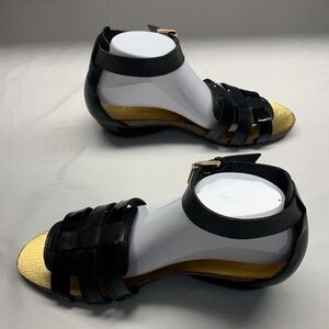 Vince Camuto Lora Leather Ankle Strap Sculpted Heel Sandals Size 10 Black