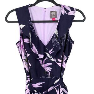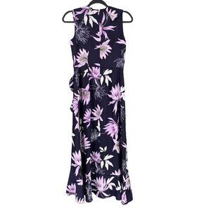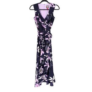 Vince Camuto Maxi Dress Womens 4 Purple Blue White Floral Faux Wrap V-Neck Flowy