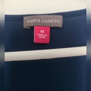 Vince Camuto Navy Royal Dark Blue Flutter Short Sleeve Waist V-Neck Top Blouse
