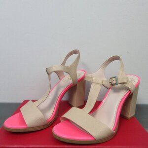 Vince Camuto Novasi Women Sandals 7 Beige Pink Pebble Leather High Heels y2k 538