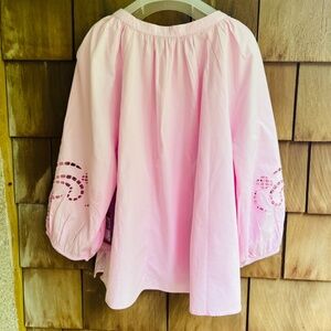 Vince Camuto Plus Size Cotton Embroidered Puff Sleeve Top, Pink Horizon 1X