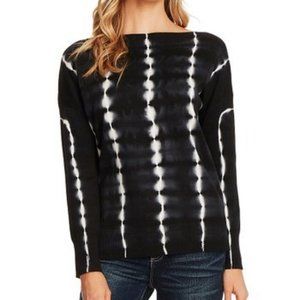 Vince Camuto Rich Black Tie-Dye Boatneck Tee S