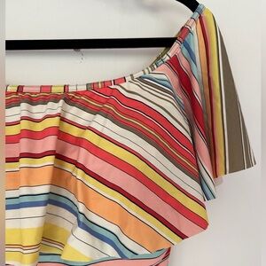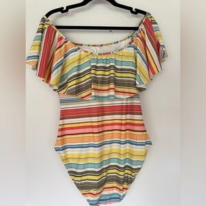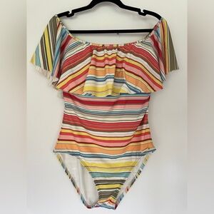 Vince Camuto | Striped Off-the-Shoulder One Piece Swimsuit | Size 14 | Ruffle