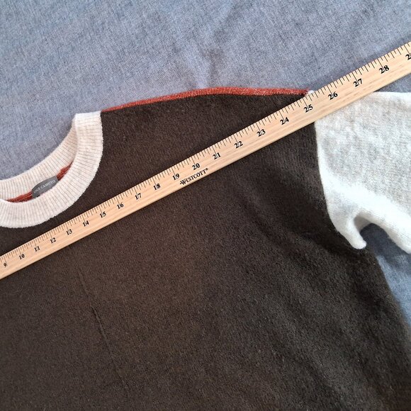 Oversized crew neck sweater by Vince Camuto in brown, orange, and beige. The soft fabric of this sweater will provide both comfort and elegance, perfect for work or weekend wear with jeans.