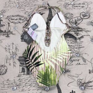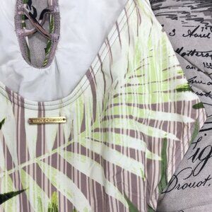 Vince Camuto Tropical Palm Printed Plunging V-Neck Swimsuit