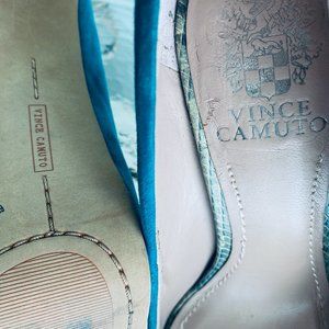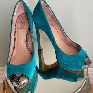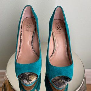 Vince Camuto Turquoise (Teal Blue) Suede Peep Toe Platform Pumps