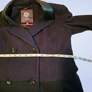 Vince Camuto Virgin Wool Colourblock Pea Coat with Faux Leather Collar - Large