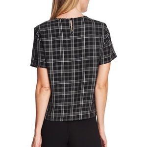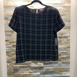 Vince Camuto Windowpane Plaid Short Sleeve Top